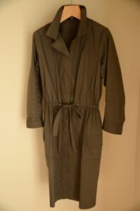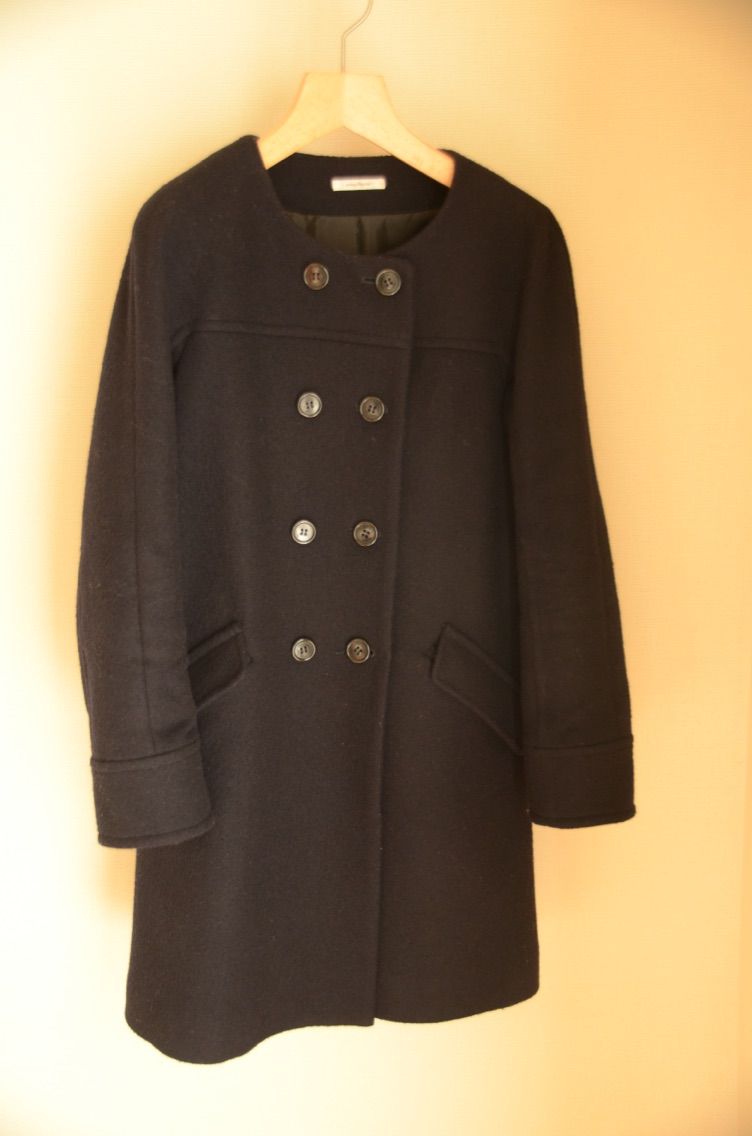 本来はかぶって着る服でしたが、脱ぎ着を楽にするために仕立て直しに出して前開きにしてコートのように使ってました。デザインがよく5年ほど愛用しましたが、さすがにくたびれてきて、バーバリーのトレンチコートを着るようになったこともあり出番がなくなりました。