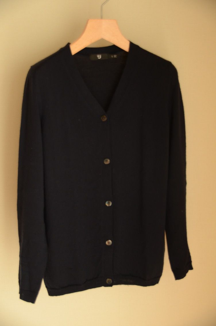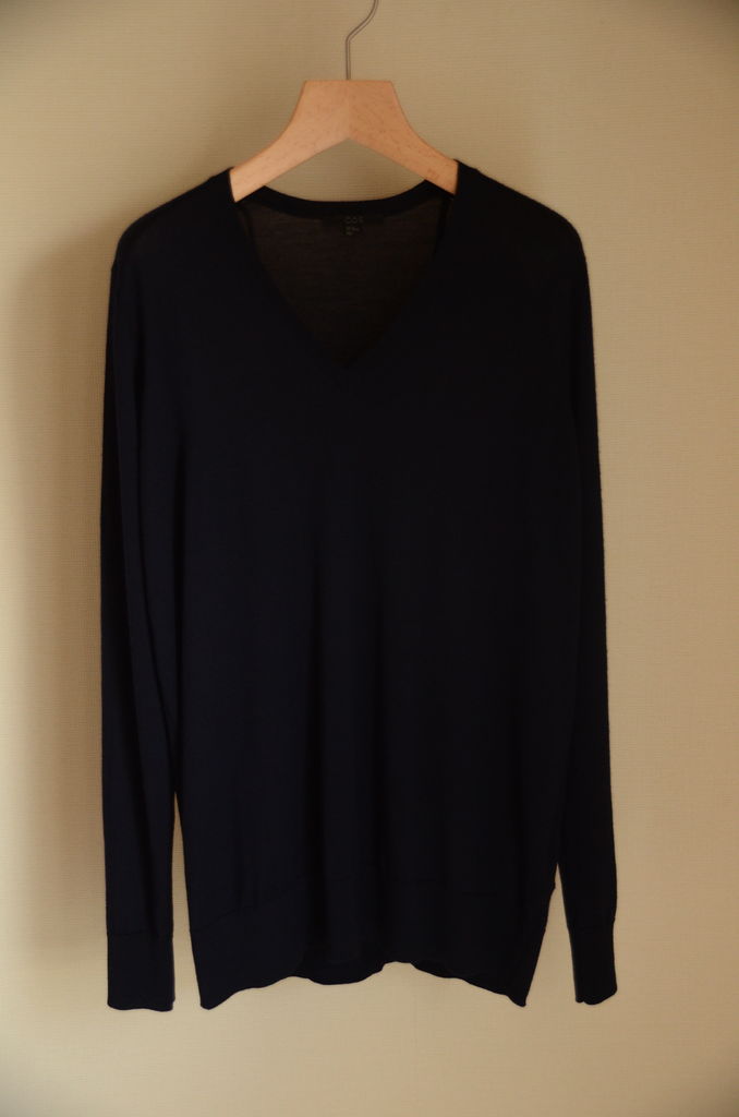 素材デザイン共に優れており5年ほど愛用しましたが、丈が短いのが気になるようになり、COSで自分に合った丈のVネックニットを見つけたので買い替えました。