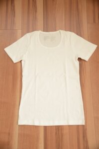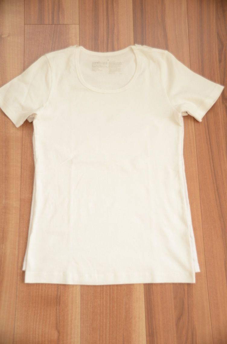 そこで、他のお店を少しチェックしてみたところ、無印良品のTシャツで似た感じのものがあったので試しに買ってみました。