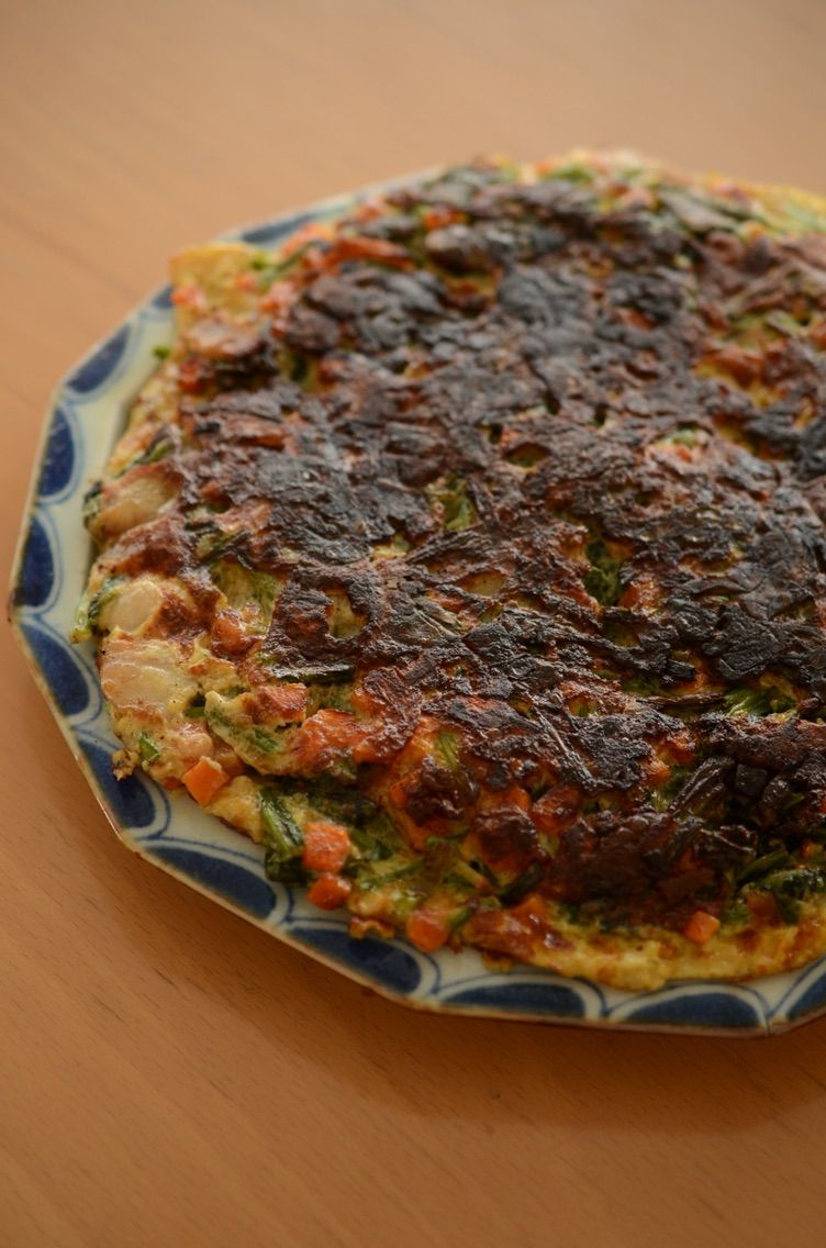 にんじん、玉ねぎ、ほうれん草、ベーコン、卵 でスペイン風オムレツを作りました。ちょっと焼き色濃いめになっちゃいましたけど 汗