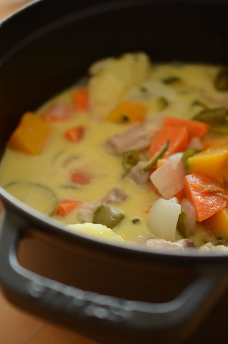 残り野菜の玉ねぎ、にんじん、ピーマン、ズッキーニ、じゃがいも、南瓜でチキンフリカッセも作りました。
