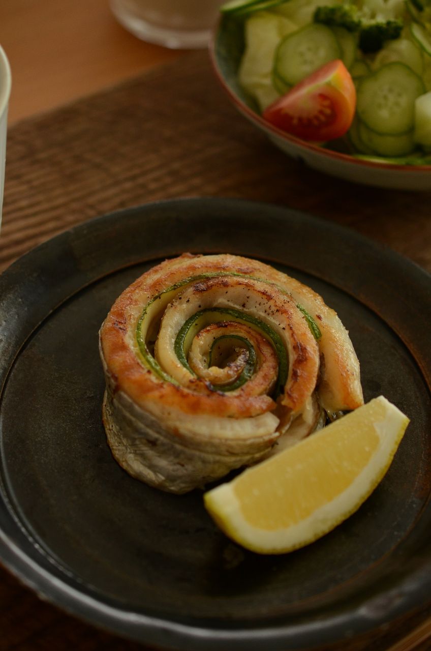 太刀魚は小ぶりなものだったので、三枚卸しにしてズッキーニとともに巻いて焼きました。これがすごくおいしかったです。
