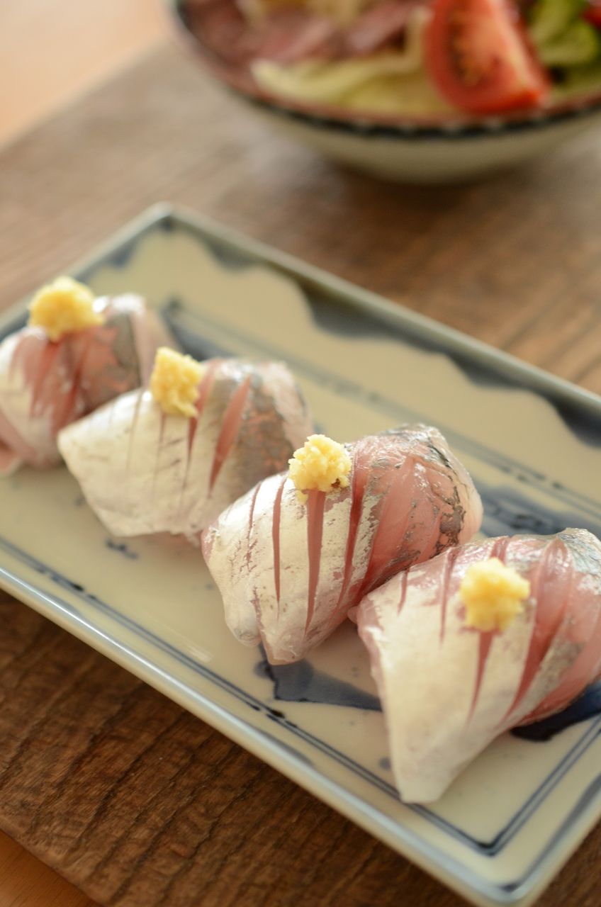 釣り鯵は三枚卸しにして腹をかき、中骨を抜き、皮引きして表面に包丁を入れ、生姜をのせて食べました。めちゃくちゃおいしかったです。