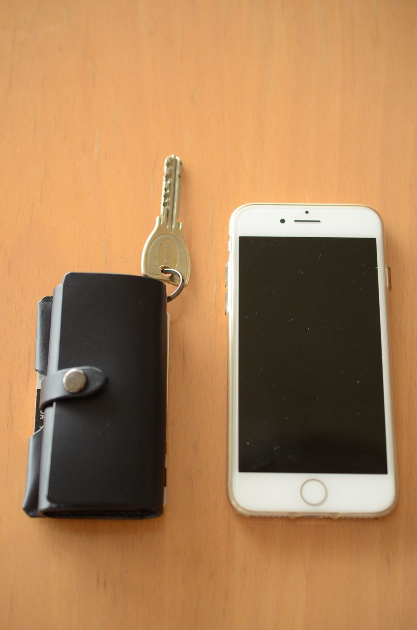 iPhone7と比較してもこの小ささなのに、小銭、紙幣、カードがおさまり、鍵も付けられます。さらに、皮の質感、端の処理の丁寧さがすばらしいのが購入の決め手になりました。