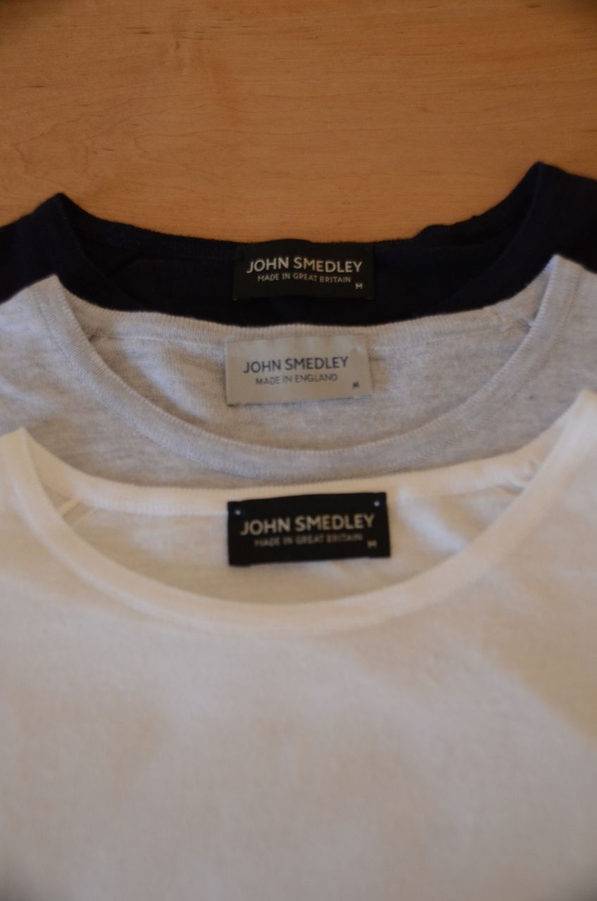 また、John Smedley でシーアイランドコットンの涼しいニットを3枚大人買いしました。ネイビー、ヘザーグレー、ホワイトです。40%OFFセールでした。着ると、まるでオーダーしたかのようにピッタリで、夏の間大活躍しました。