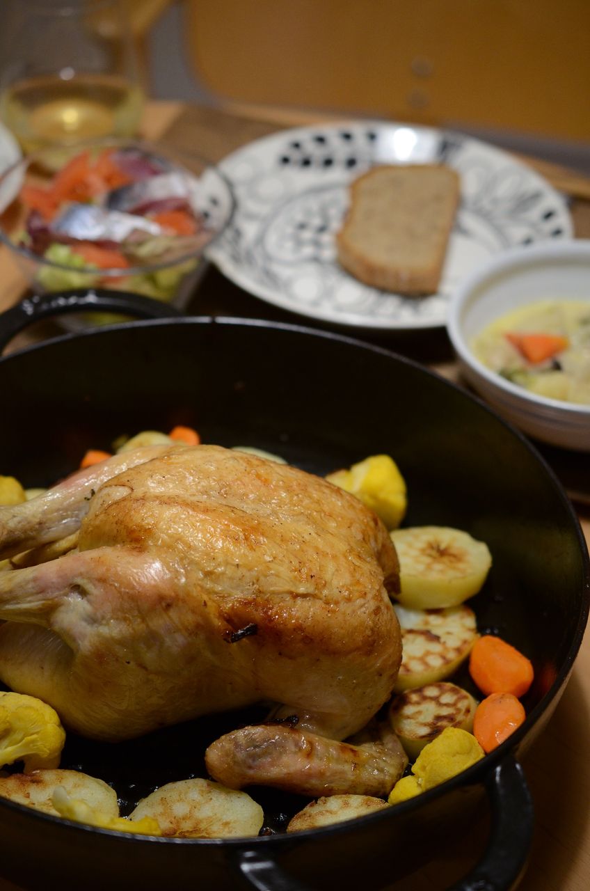 ・ローストチキン+ポテト、にんじん、カリフラワー