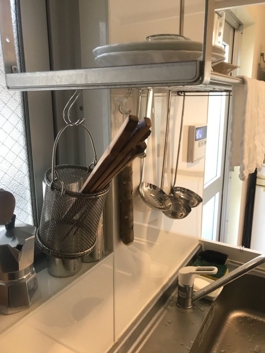 新居に引っ越した当初、イライラしたのが、いろんなものをぶら下げられるフック類が全然ないことでした。そこで、あちこちのお店をまわって少しずつフックを買い足していったら、最近ようやくイライラがなくなり、快適に過ごせるようになりました。