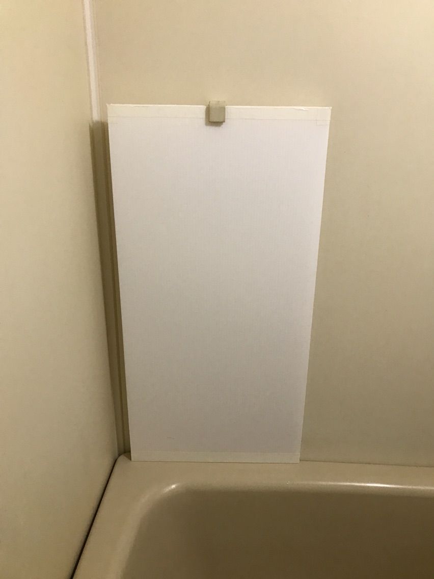 お風呂場では、大型マグネットフック(無印良品)を上下逆に付けて、風呂ふた留めに。