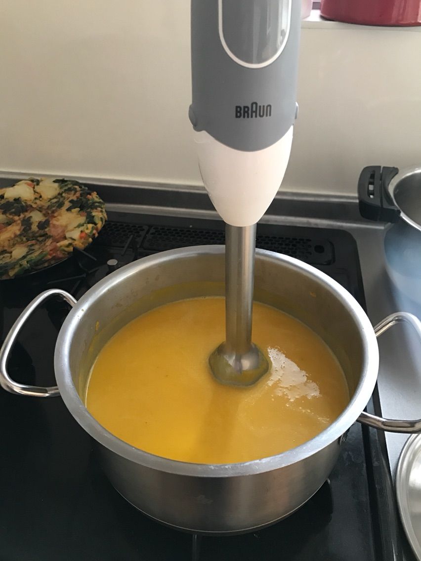 長ねぎと南瓜でポタージュを作りました。新型のマルチクイックを使いました。滑らかに仕上がりました。