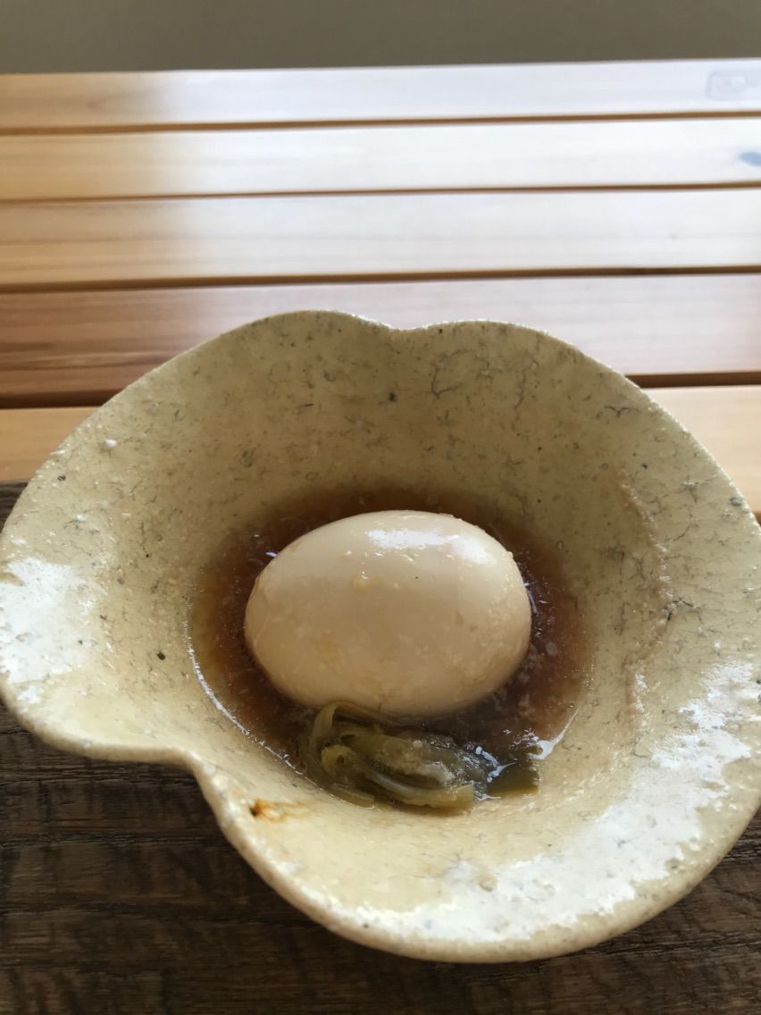 先週、豚の角煮を作った時の煮汁を火入れして、ゆで卵を入れて味玉も作りました。