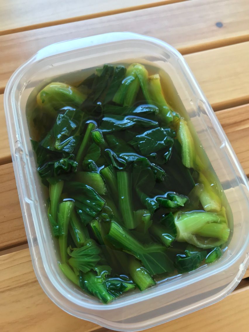 お浸しとは、ゆでた青菜に醤油をぶっかけたものではありません。こうやって浸し地に数時間漬け込むのです。