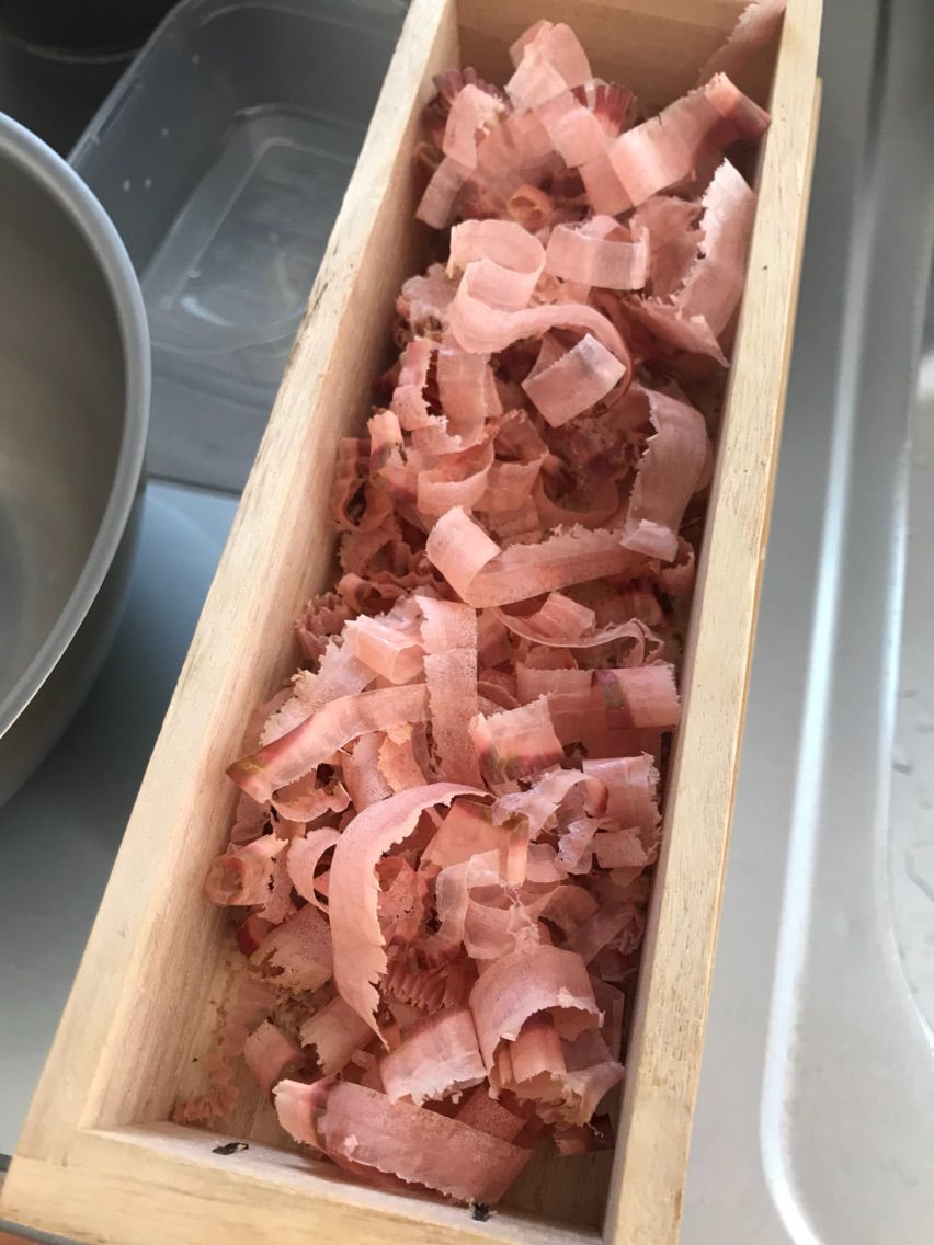 残りの小松菜で、お浸しを作りました。真昆布と、本枯節を削って引いた混合出汁を使って10杯くらいの浸し地を作りました。(出汁:薄口醤油:味醂=10:1:0.5)