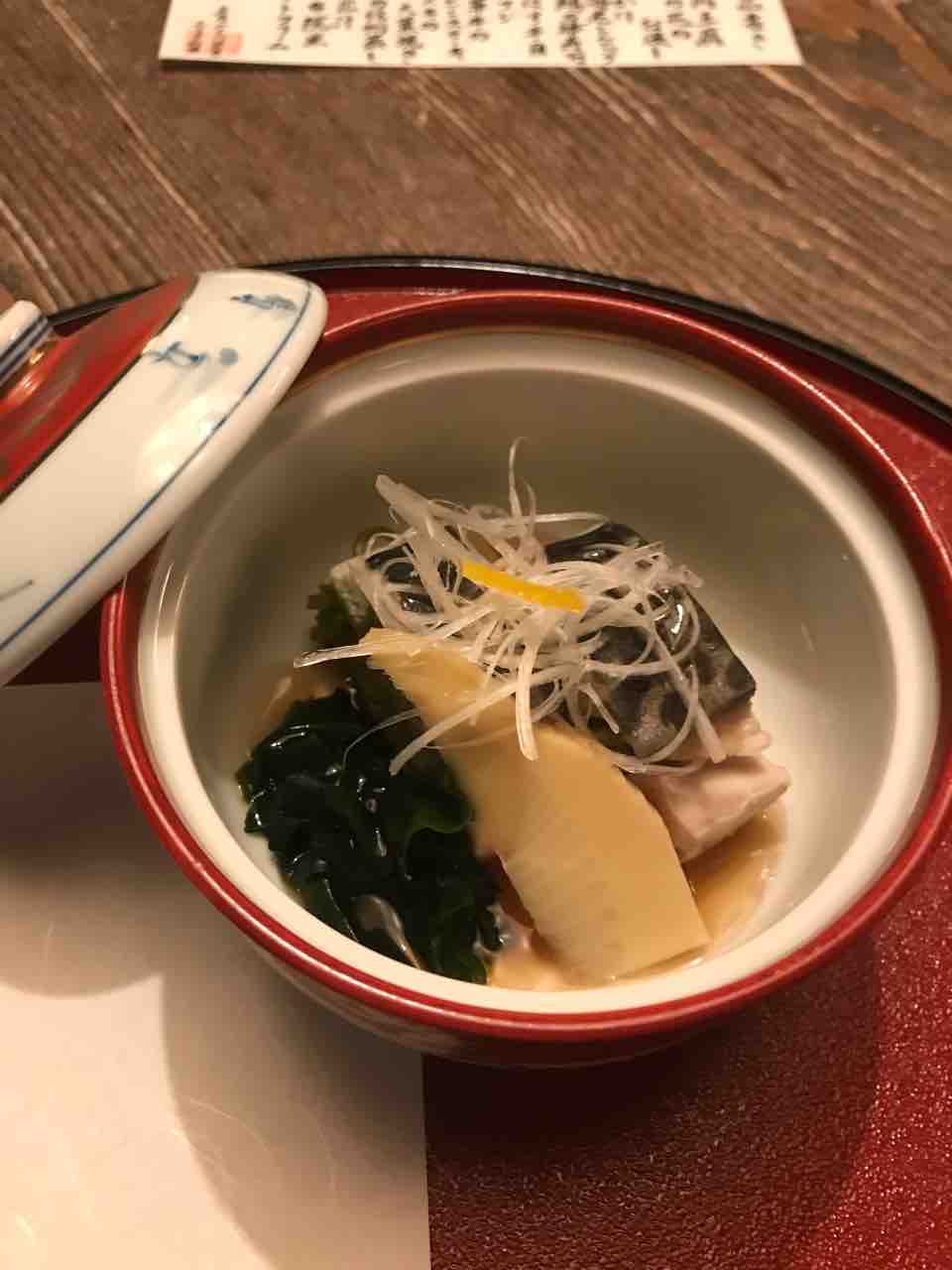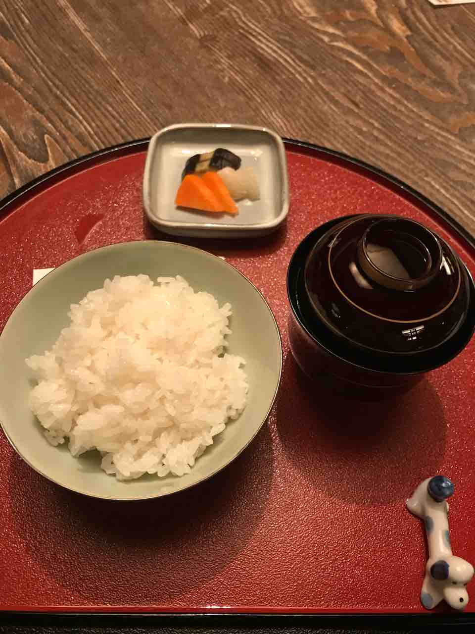 塗りのお椀はピカピカに磨き上げられ、熱いものは熱く、冷たいものは冷たく、ご飯は炊きたてで、料理人の気遣いと余裕が感じられ、満足しました。