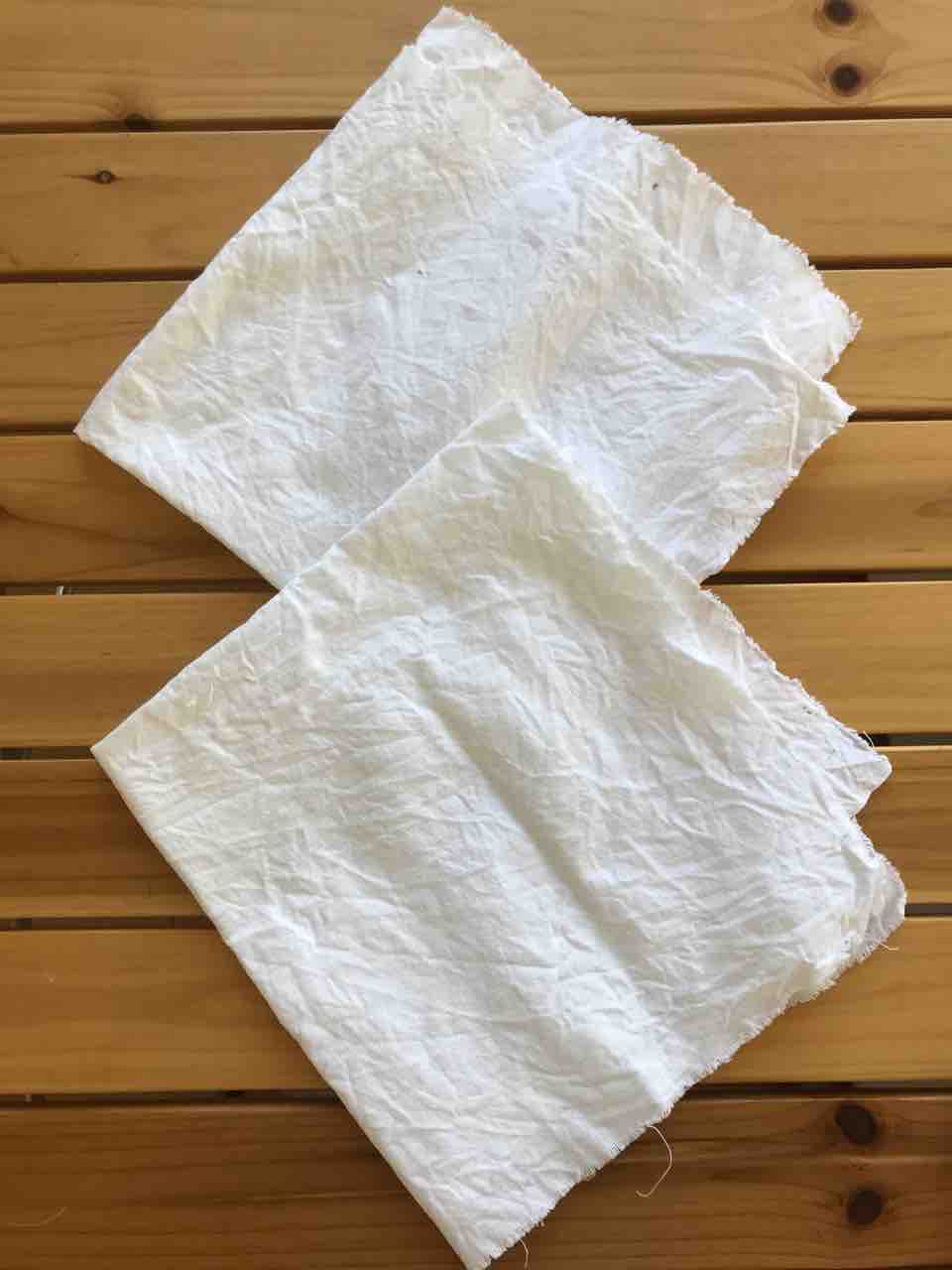 買って来たさらしは、正方形に切るだけで使い始められます。端は縫わずあえてほつれさせ、糸くずだけ取ります。こうすると縫い目にカスがたまらないので衛生的です。