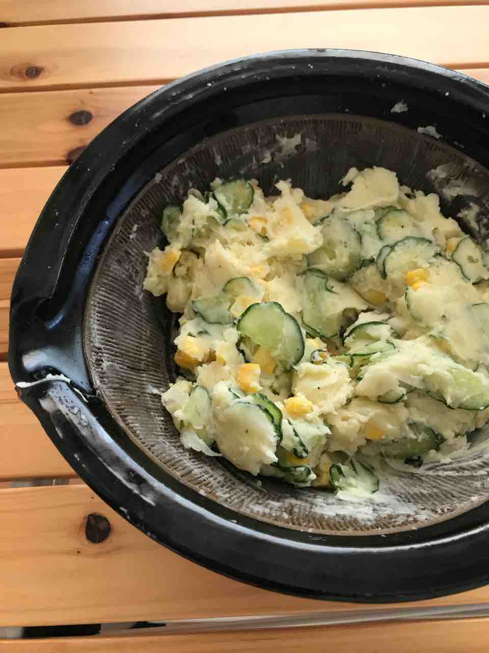 たまねぎ、じゃがいも、きゅうり、とうもろこし でポテトサラダを作りました。