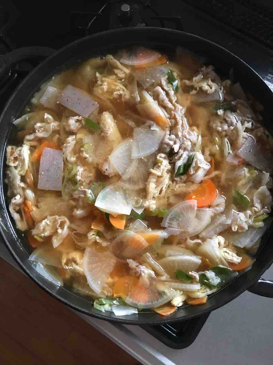 鶏もも肉、大根、なす、ピーマン、しめじ でグリーンカレーを作りました。