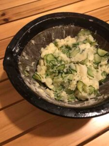 合挽肉、にら、キャベツ、しいたけ で餃子を作りました。餃子包みは息子が手伝ってくれました。息子は今や私と同じくらい手早くきれいに包めるようになりました。