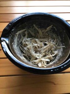 ごぼうはささがきにして、半分はゆでてごまマヨネーズで和え、ごぼうサラダを作りました。