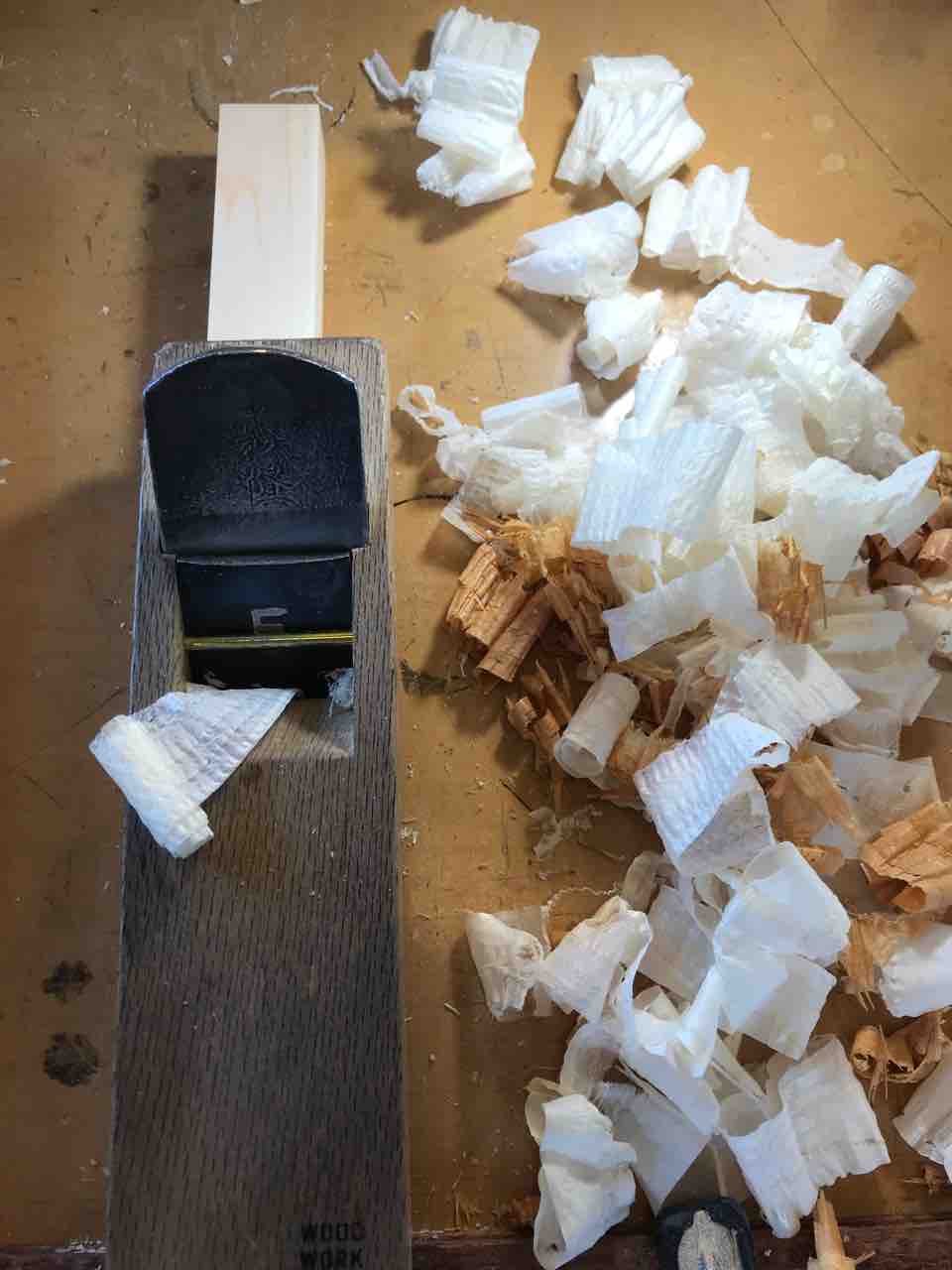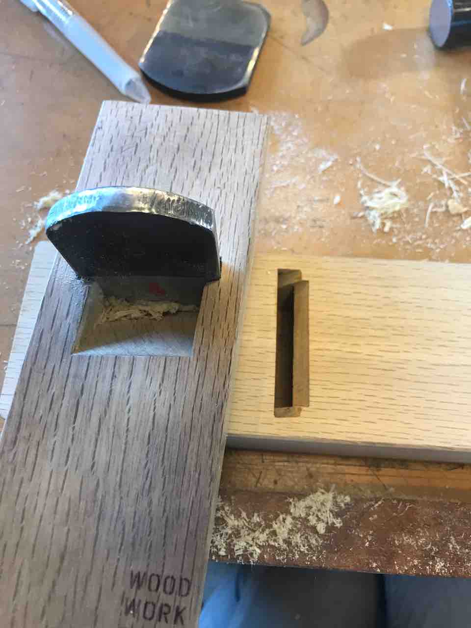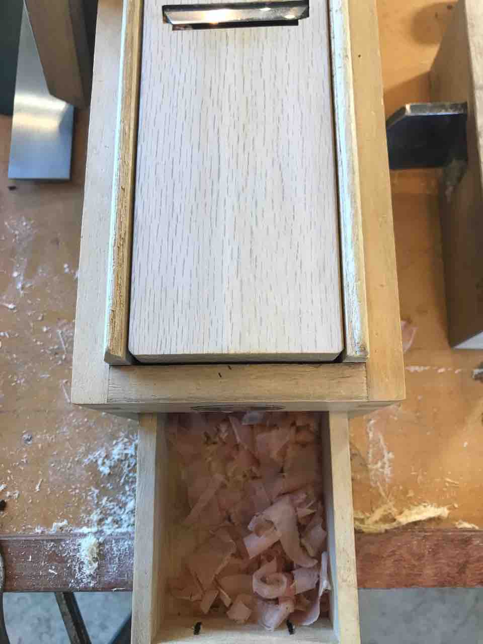 台の刃の部分以外の高さを下げるため、調整用の鉋で削りました。