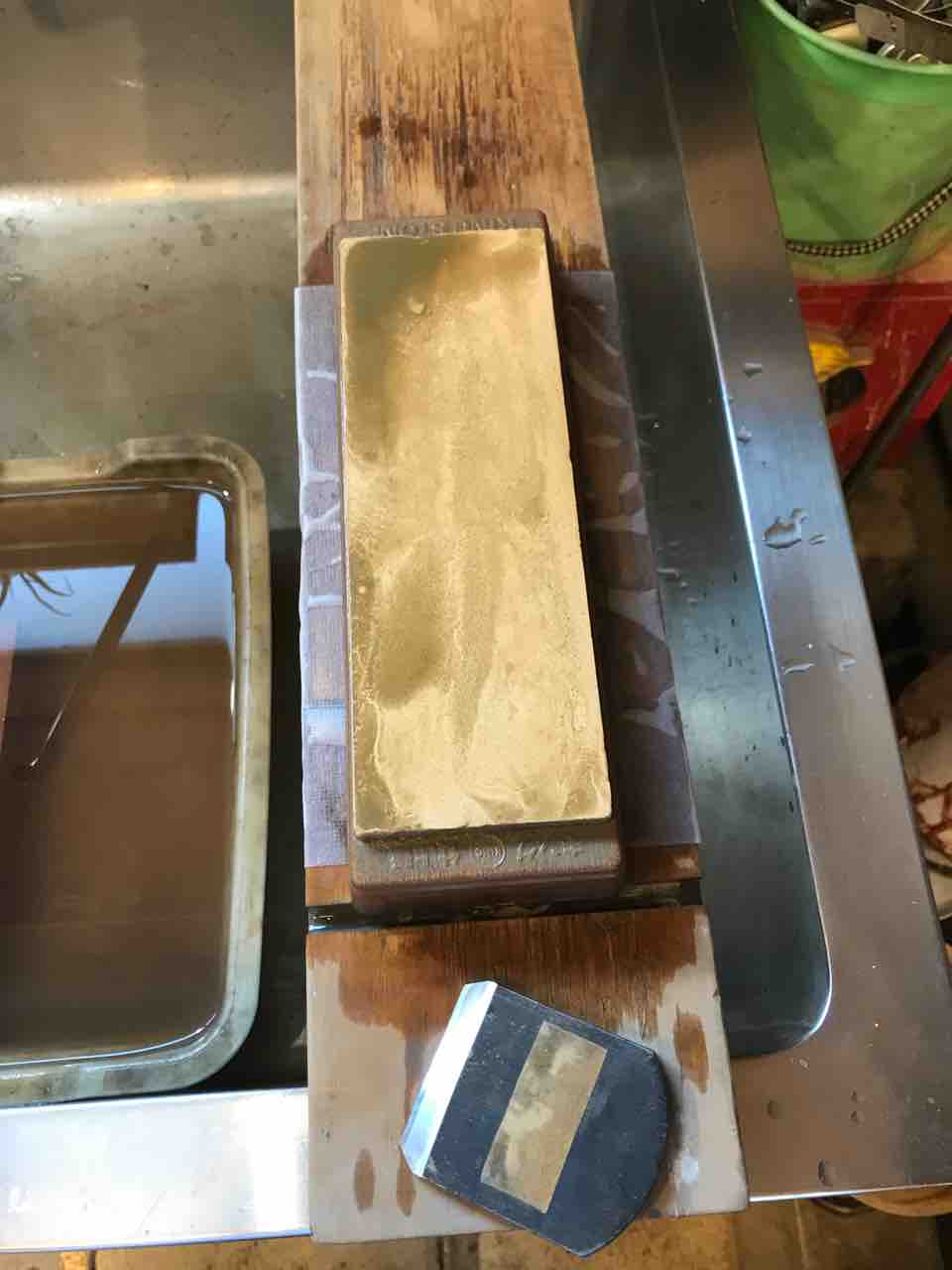先週研いだ刃を付けたところ、刃の右側が斜めに飛び出す傾向にあったので、それを削るように研ぎ直しました。