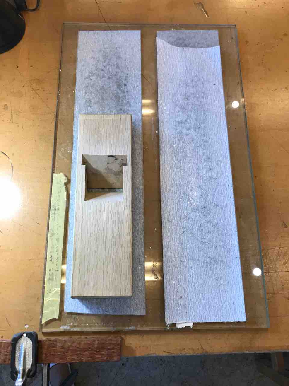 サンドペーパーで、台の表面を平らにしました。