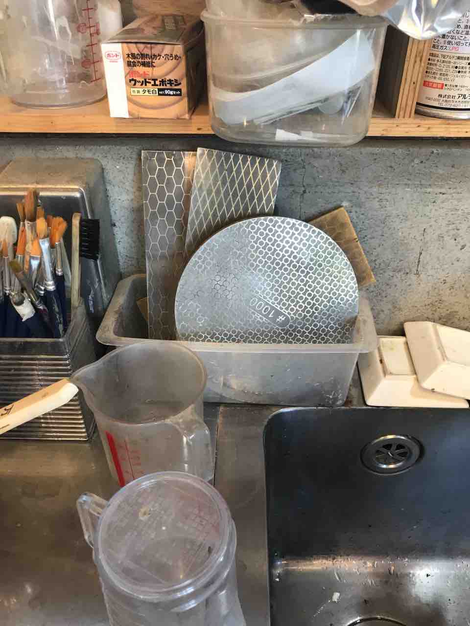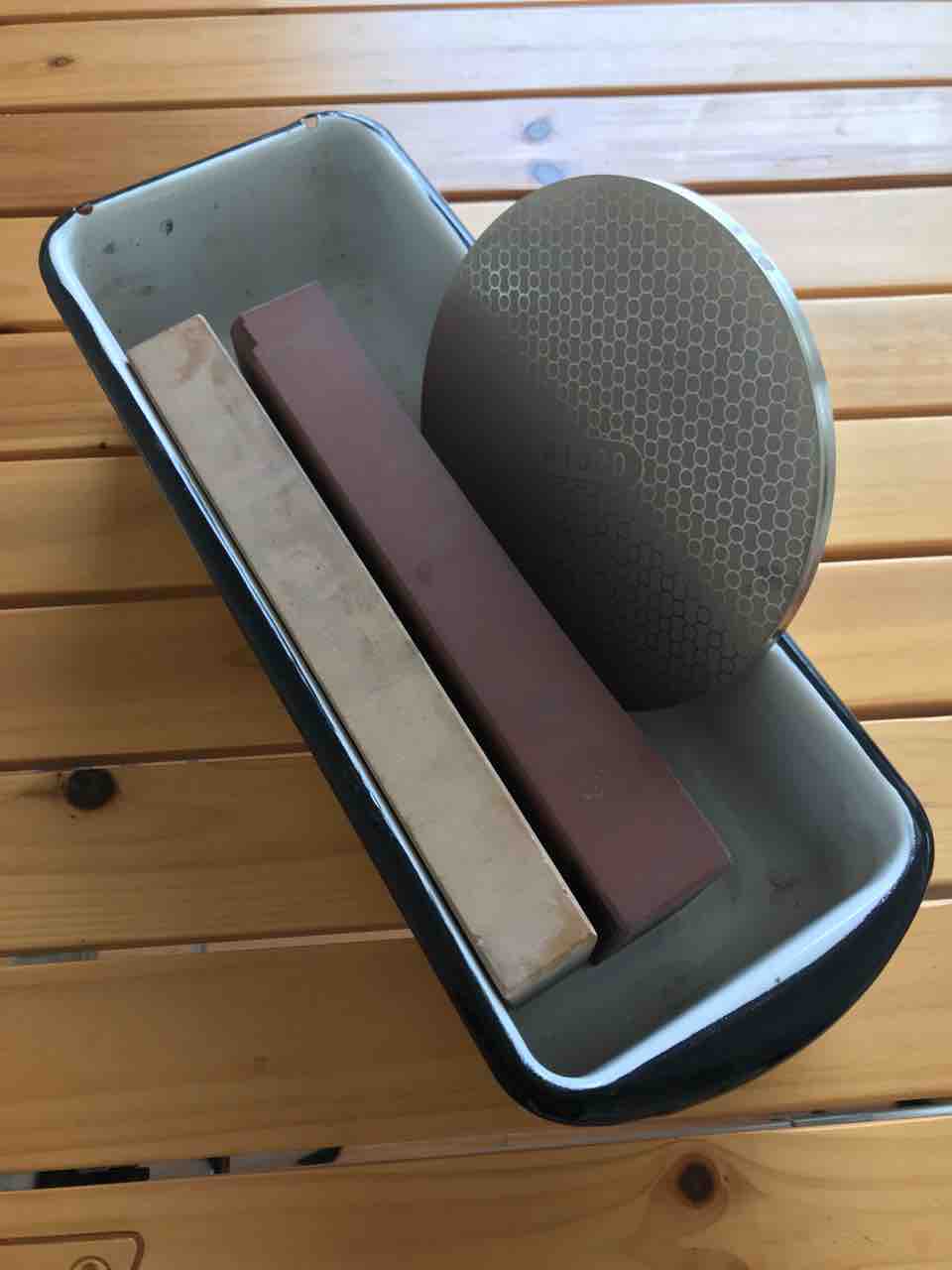 これを機に、愛用の砥石セットの見直しもしました。重くてかさばるゴムの砥石台は断捨離しました。これ、たいそうな装置で砥石はガッチリ固定できるのですが、結局、砥石台自体がすべるんです。意味がなかった。