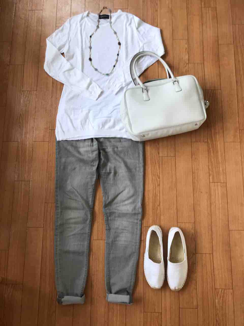 金沢は曇りで気温が高いとの予報であったので、薄いコットンニットにエスパドリーユを合わせました。