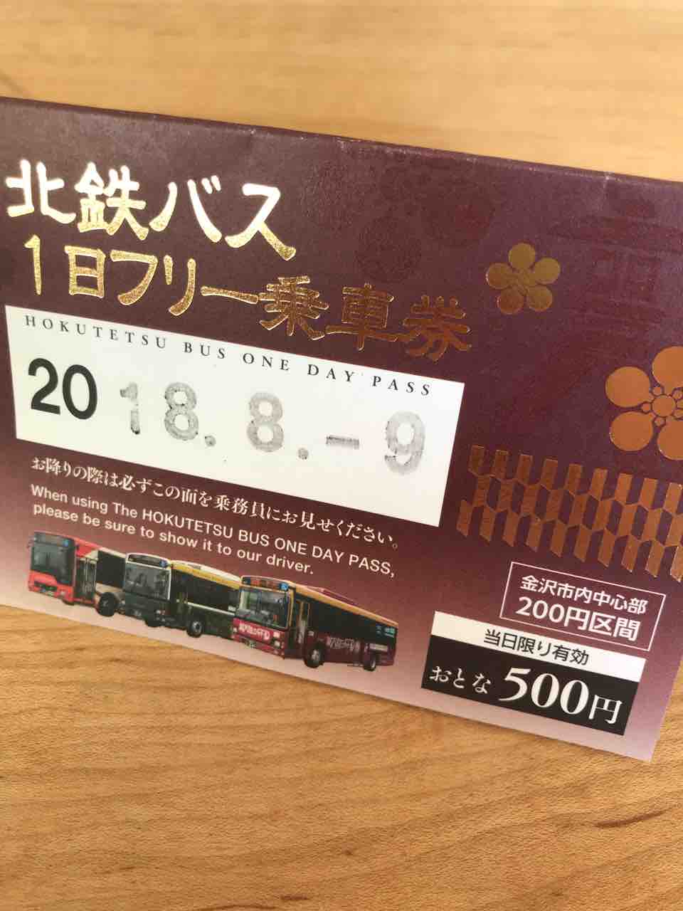 北陸バスの1日フリー乗車券を買いました。これで主要な路線バスと周遊バスが乗り放題になりました。バスの本数はものすごかったので、すごく便利でした。