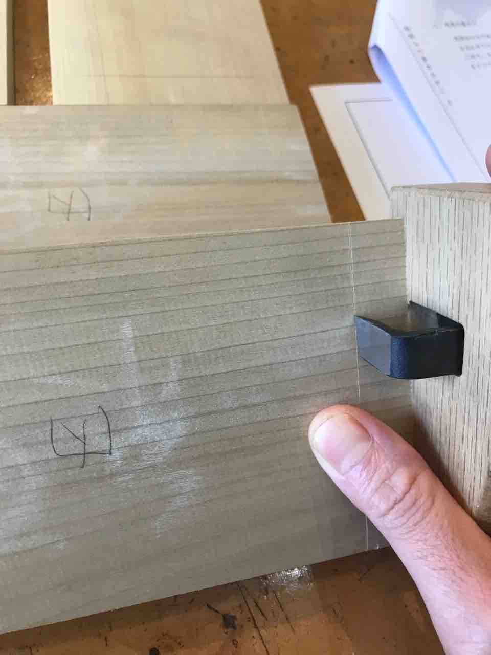 枡作り その1 2018 8/15 木工教室 2018年8月15日 毎回楽しみにしている木工教室です。 鉋(かんな)講習が終わり、枡作りに取りかかりました。 枡では、木材を凹凸に加工して接合する、「継ぎ手」の技法が学べます。 今回は、三枚組継ぎと五枚組継ぎの2種類の継ぎ手をやることになりました。 早速、木材を並べてどの向きで組むのか決め、間違えないように印を入れました。 そして、墨付けと言って、罫引き(けひき)を使って加工線を入れていきました。 楽しい作業は次回に続きます。 励みになります。 応援のクリックお願いします<(_ _)> 木工教室 この記事が気に入ったら フォローしてね! Follow @citrus_bkr よかったらシェアしてね! URLをコピーしました! URLをコピーしました! 鉋(かんな)講習 その3 かつお節削り器の調整 枡作り その2 この記事を書いた人 kitchen_obake 関連記事 【木工教室 最終回】白書き(しらがき)と毛引き(けひき)の仕込み 2021年8月30日 小抽き出し その27 塗装(2回目), 持ち手の取付け 2021年8月29日 小抽き出し その26 台輪の取付け、塗装(1回目) 2021年8月26日 小抽き出し その25 抽き出しのはめ合い調整 2021年8月19日 小抽き出し その24 天板の取付けと台輪 2021年7月23日 小抽き出し その23 背板の接ぎ合わせ 2021年6月24日 小抽き出し その22 天板の接ぎ合わせ 2021年6月11日 小抽き出し その21 摺り桟の取り付け 2021年6月10日 コメント コメントする コメントをキャンセルコメント ※ 名前 ※ メール ※ サイト 次回のコメントで使用するためブラウザーに自分の名前、メールアドレス、サイトを保存する。