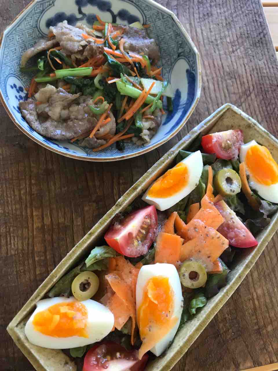 そしてこのマリネと、レタス、ミディトマト、ゆで卵 でサラダも作りました。