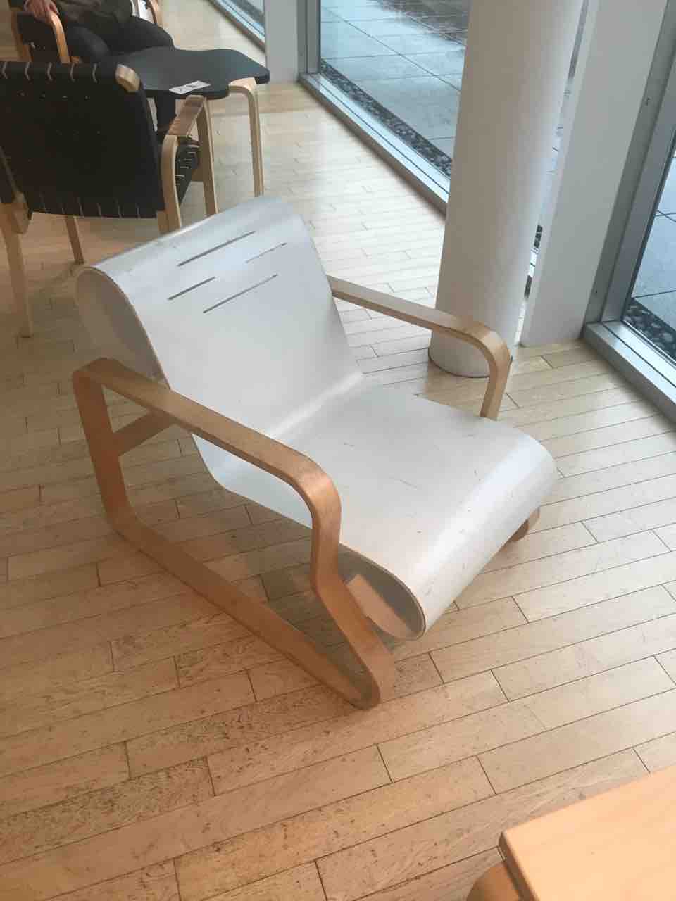 さて、アアルトは、設計した建物の中のインテリアも手掛けていて、椅子、テーブル、照明などがたくさん残されています。