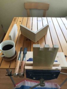 枡作り その7 2018 10/12 木工教室 2018年10月12日 毎週楽しみにしている木工教室です。 2箇所あるうちの、1箇所の五枚組の継手を仕上げました。 留(とめ、材料を直角に接合する仕口のこと)の仕上げを残して完成しました。 留の仕上げは、専用の治具を使って鑿(のみ)で仕上げる予定です。 励みになります。 応援のクリックお願いします<(_ _)> 木工教室 この記事が気に入ったら フォローしてね! Follow @citrus_bkr よかったらシェアしてね! URLをコピーしました! URLをコピーしました! 自宅での木工作業 包丁の鞘のDIY その1 この記事を書いた人 kitchen_obake 関連記事 【木工教室 最終回】白書き(しらがき)と毛引き(けひき)の仕込み 2021年8月30日 小抽き出し その27 塗装(2回目), 持ち手の取付け 2021年8月29日 小抽き出し その26 台輪の取付け、塗装(1回目) 2021年8月26日 小抽き出し その25 抽き出しのはめ合い調整 2021年8月19日 小抽き出し その24 天板の取付けと台輪 2021年7月23日 小抽き出し その23 背板の接ぎ合わせ 2021年6月24日 小抽き出し その22 天板の接ぎ合わせ 2021年6月11日 小抽き出し その21 摺り桟の取り付け 2021年6月10日 コメント コメントする コメントをキャンセルコメント ※ 名前 ※ メール ※ サイト 次回のコメントで使用するためブラウザーに自分の名前、メールアドレス、サイトを保存する。