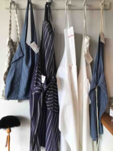 画像の右から3つ目のリネンの白いエプロンを買いました。