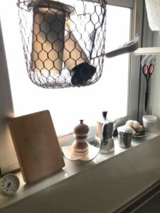 上部には銅の吊りかご、その中にはエアロプレスと温度計を収納してます。