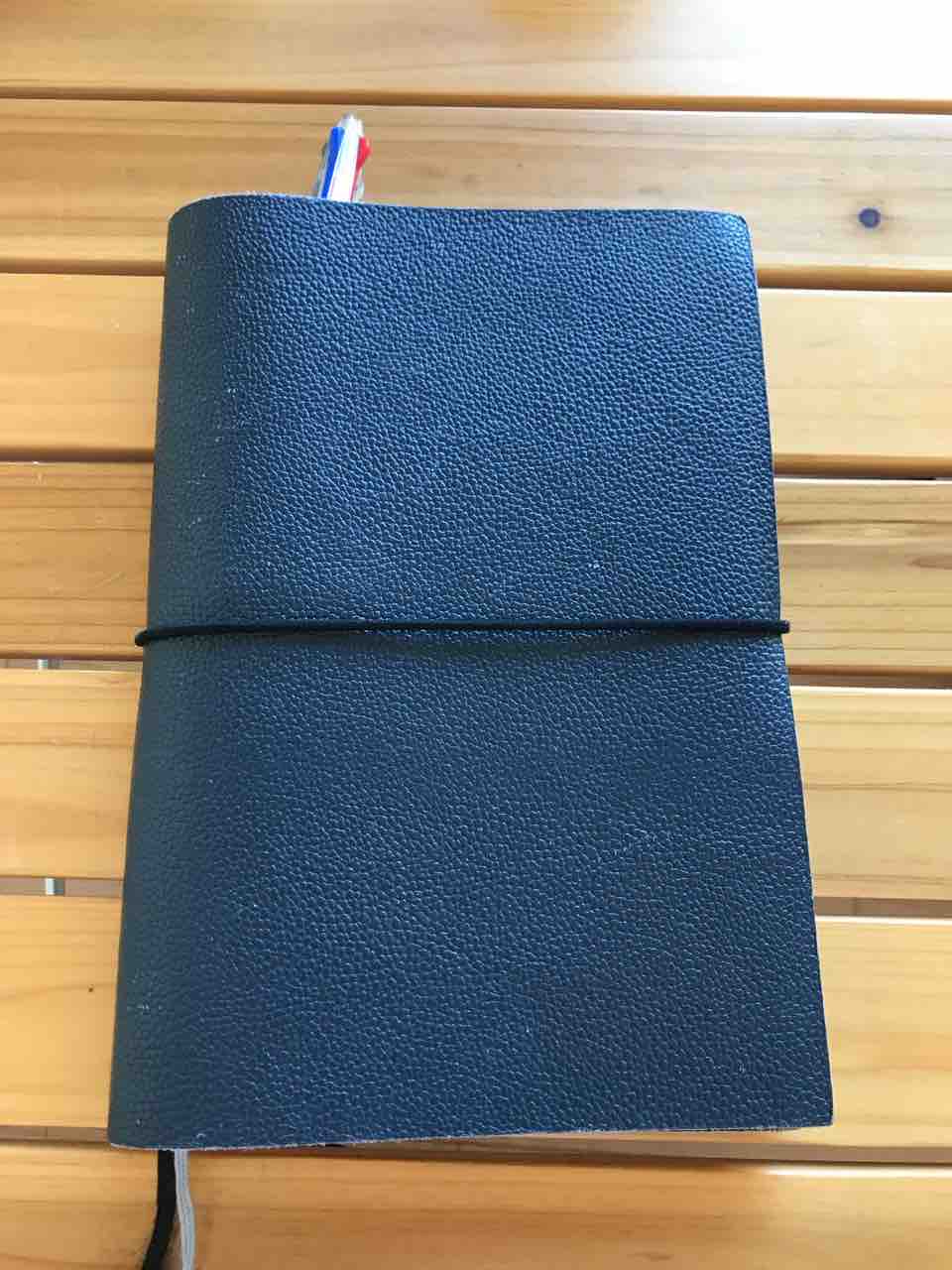 そんなお気に入りの手帳には、革のカバーをかけて愛用してます。