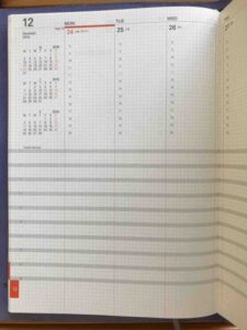 私の仕事は、会議とか打合せとかほとんどないので、時間の決まっているスケジュールを書き込む欄は少しか、なくてもいいくらいです。