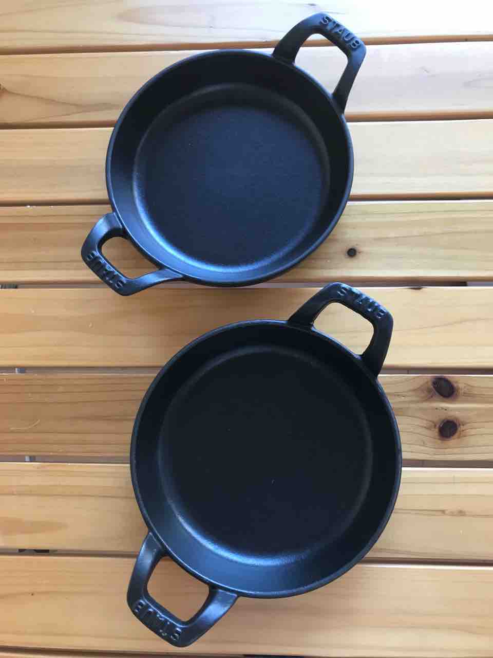 同じものを2個持ってます。個々盛りの焼き物料理に使っています。最近、これでオムレツを作ったら、すごくおいしいことがわかりました。