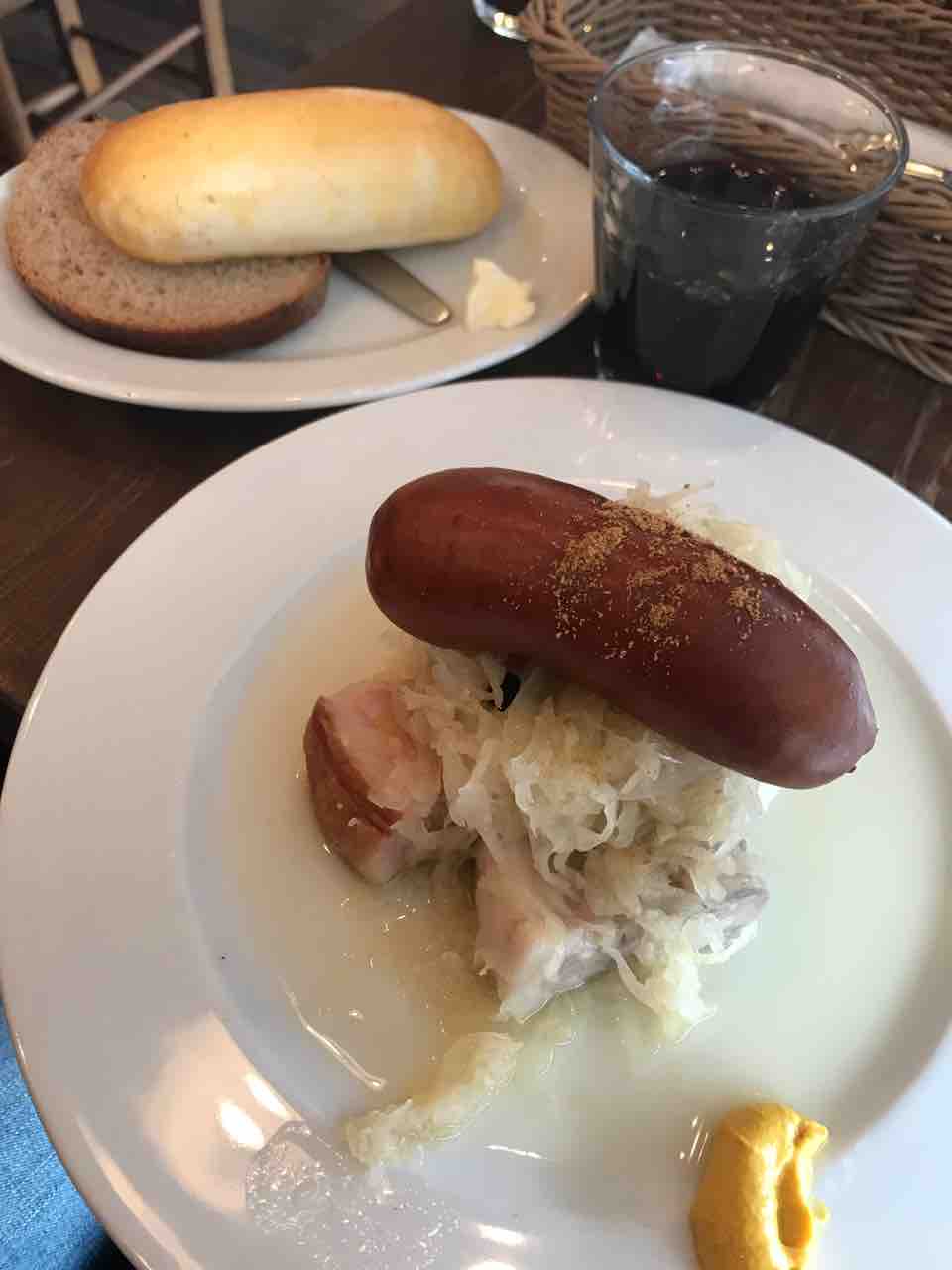 ベルグフェルド 2018 12/02 おいしいお店 2018年12月2日 鎌倉にあるドイツパンの名店に行きました。 併設のカフェでランチしました。 選んだのは、「ザワークラウトとパン」1,500円です。ドリンクは赤ワインにしました。 お料理は、アイスバインの上にザワークラウトがたっぷりとのっており、さらにその上に巨大ソーセージがどーんと鎮座しておりました。 味は優しく、素材の良さを堪能できました。ライ麦パンは小麦粉の配合が高く食べやすいものでしたが、もっとライムギの比率を高めて攻めて欲しかったです。 デザートもついて、お腹いっぱいになりました。 帰りに、隣のベーカリーでお買い物しました。 息子にキャラウェイシード入りのライ麦パンを買って帰りました。 また絶対行きたいです。 励みになります。 応援のクリックお願いします<(_ _)> おいしいお店 この記事が気に入ったら フォローしてね! Follow @citrus_bkr よかったらシェアしてね! URLをコピーしました! URLをコピーしました! WOODBERRY COFFEE ROASTERS DANDELION CHOCOLATE ダンデライオン・チョコレート この記事を書いた人 kitchen_obake 関連記事 いせ源のあんこう料理 2025年3月14日 フレンチレストラン Air エール 2025年1月20日 スロープサイドダイナー ザクロのディナーブッフェ 2024年12月24日 帝国ホテル インペリアルバイキング サール 2024年10月28日 ランス・ヤナギダテ 2024年9月15日 御殿場 Maison KEI 2024年6月5日 大磯プリンスホテル S.DINIG のディナーセミブッフェ 2024年4月23日 ちぼり湯河原スイーツファクトリーでのお楽しみ 2024年4月21日 コメント コメントする コメントをキャンセルコメント ※ 名前 ※ メール ※ サイト 次回のコメントで使用するためブラウザーに自分の名前、メールアドレス、サイトを保存する。