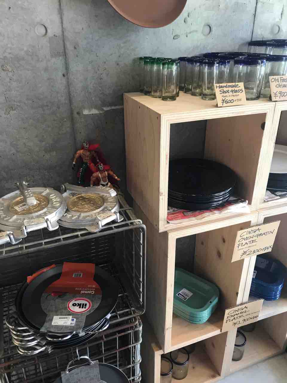 余談ですが、店頭にあった、ワインの瓶をぺったんこにつぶして作ったガラス皿が良い感じで、買おうかどうか迷いました。