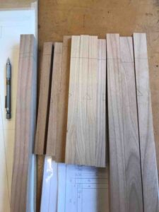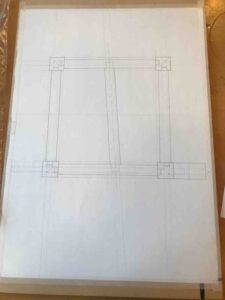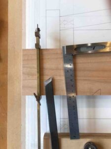 今回は、罫引きやシャープペンシルを使って、材料に寸法線を記入しました。