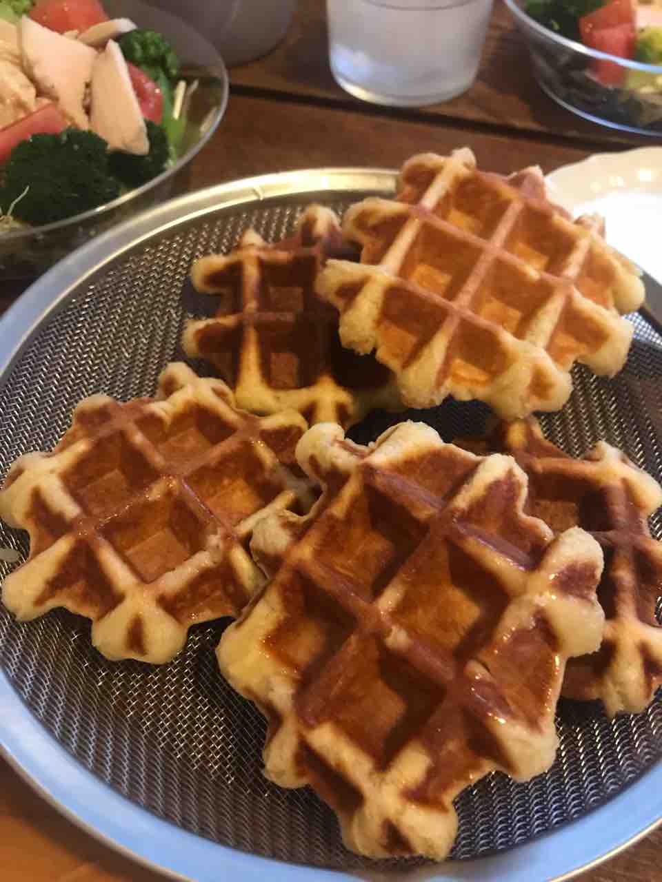 リエージュタイプのワッフルも作りました。あられ糖をこれでもかっつーくらい射込んでじゃりじゃりした食感に仕上げました。あられ糖、めでたく使い終わりました。