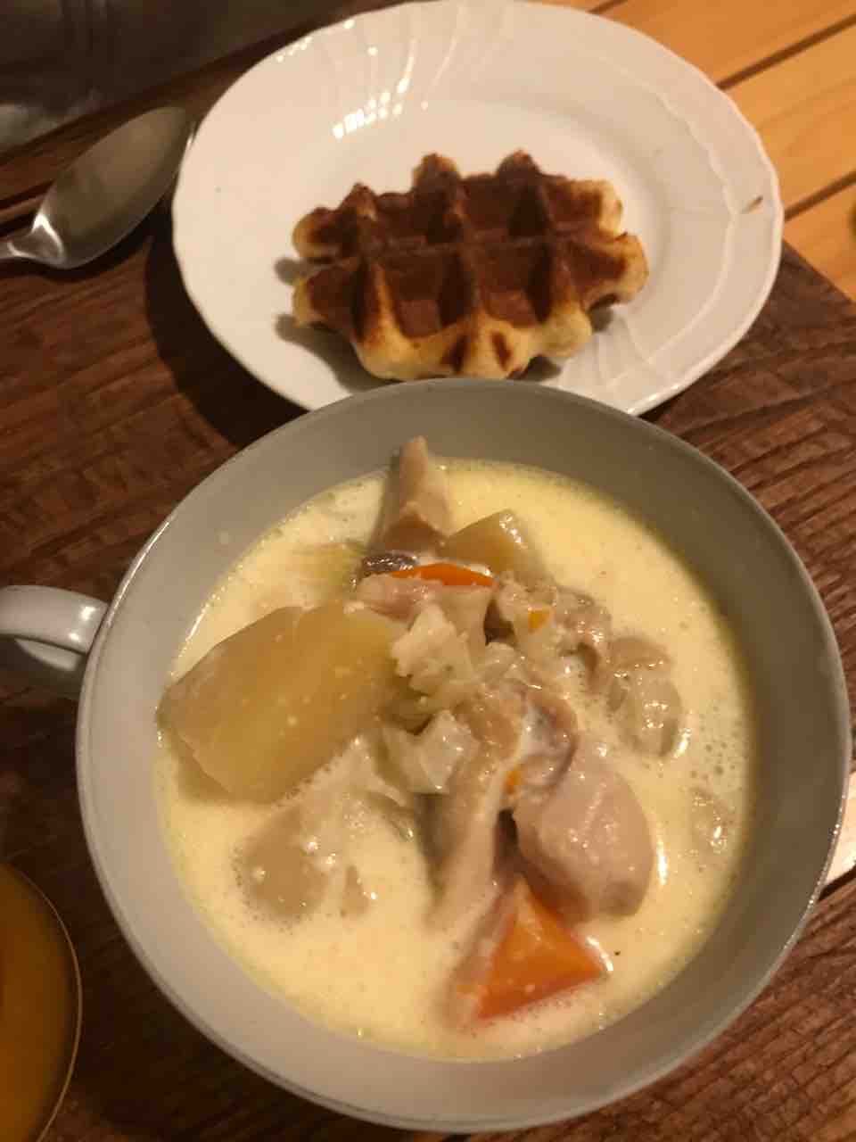 大根、じゃがいも、にんじん、鶏もも肉、エリンギ でチキンフリカッセを作りました。