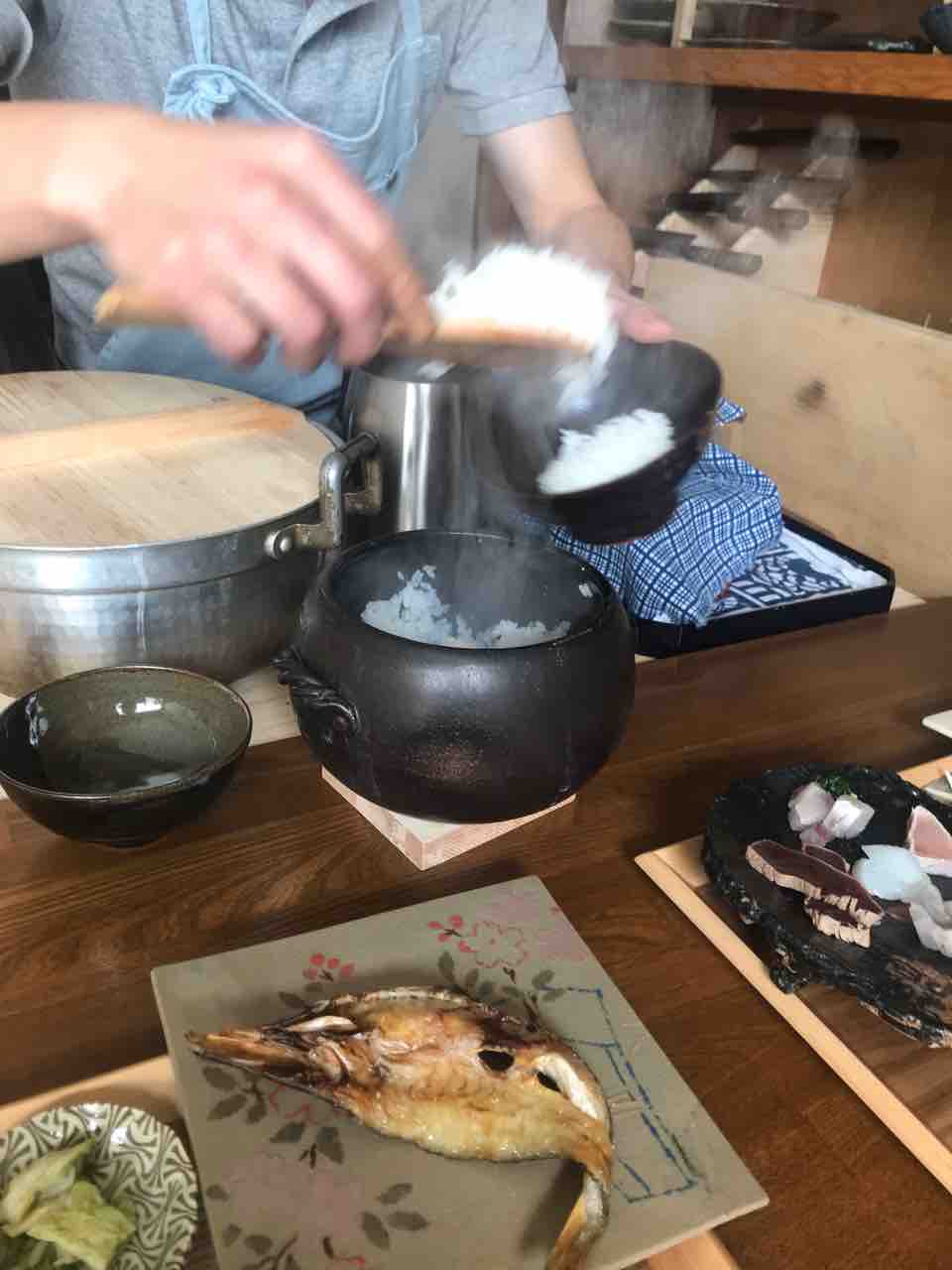 元お隣さんが予約してくれたので、土鍋ごはんが出てきました。これにはびっくりしました。