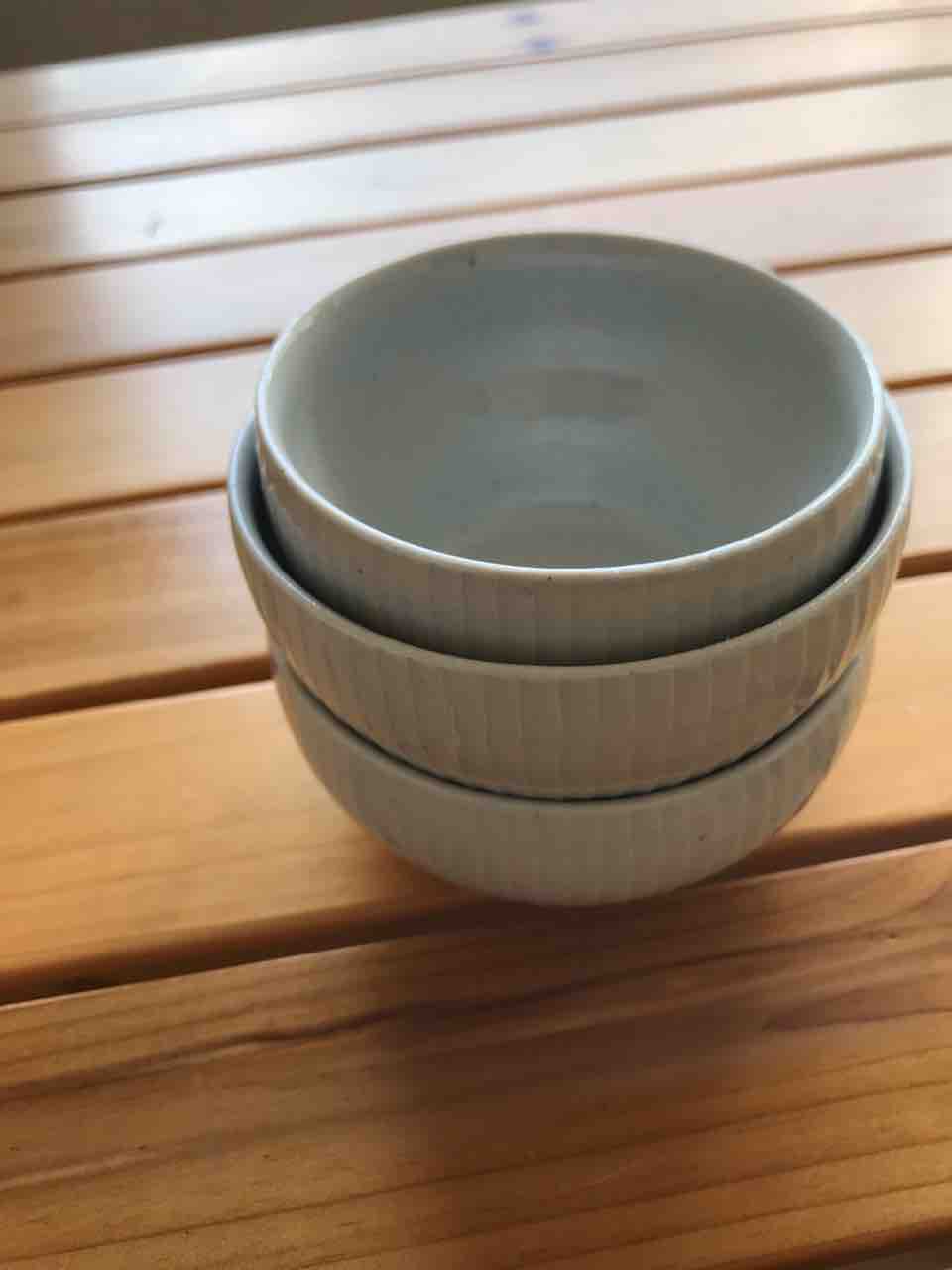 お浸しや煮浸しなどを盛る小鉢がウチにはなかったので、もし良いものがあれば買おうと思って行ったら、いろんな形の白磁のフリーカップがあったので3つ買いました。