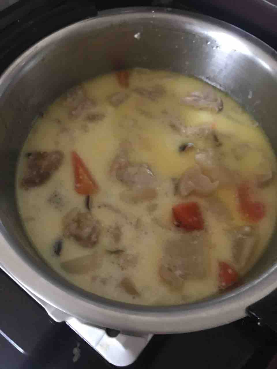 起床後、煮汁を使ってホワイトソースを作り、完成させました。