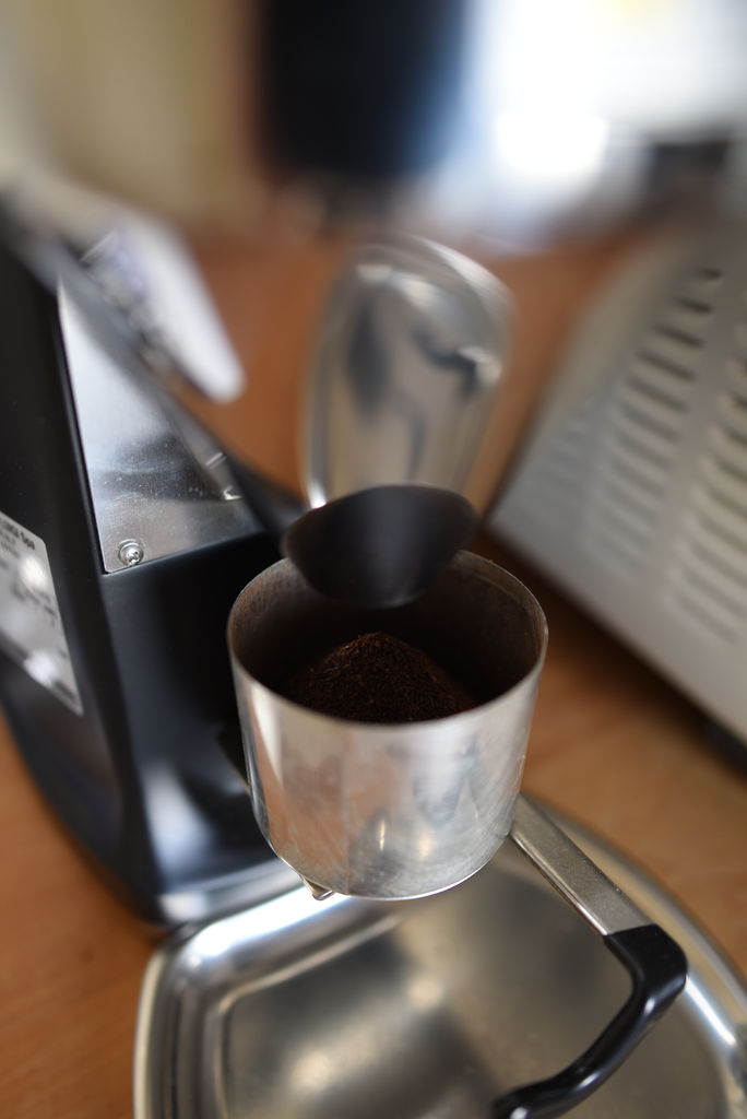 まず、Mazzer mini electric で豆を挽きます。