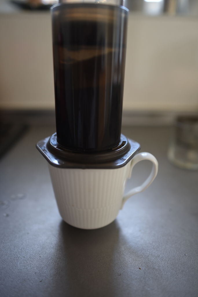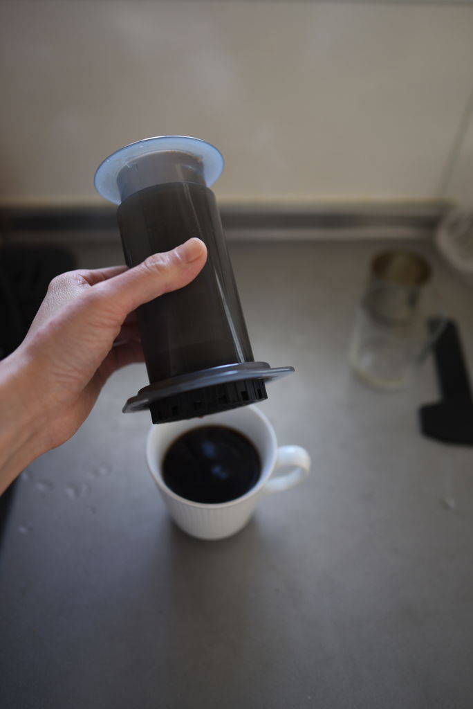 エアロプレスでコーヒーを淹れます。お湯の温度は80℃で、系全体をしっかりと温めておきます。