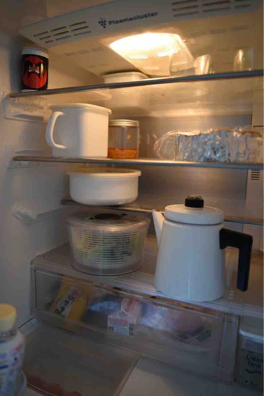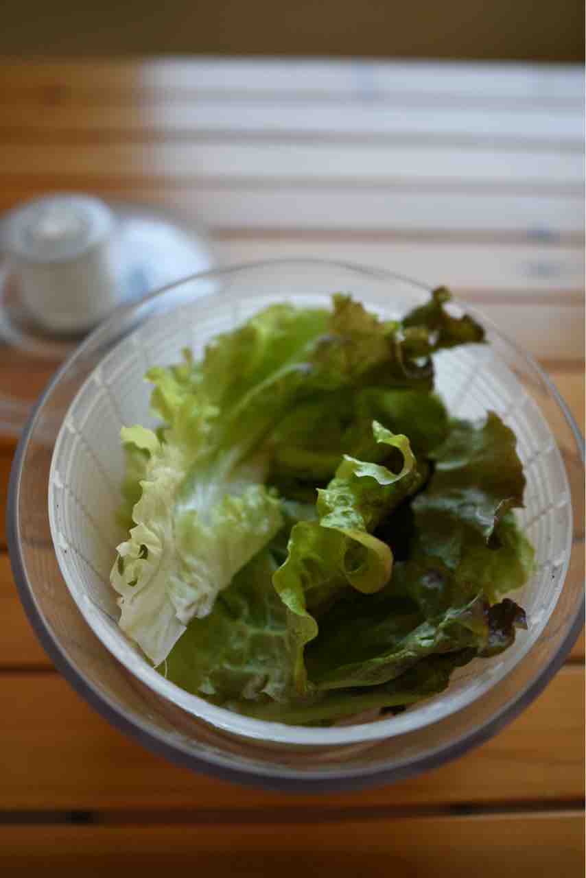 サラダスピナーの定位置は冷蔵庫です。洗って水切りしたレタスを入れておくだけで、いつでもパリパリ食感のサラダが楽しめます。