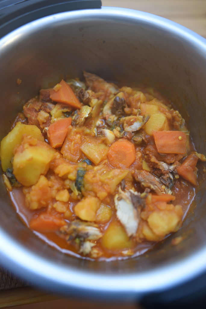 真鯖、玉ねぎ、生姜、じゃがいも、にんじん、有機トマトピューレ でカレーも作りました。これすごくおいしかったです。