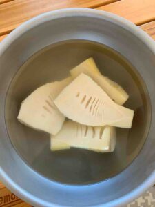 最近では、湯温を測るためのアラーム付き温度計も刺してます。